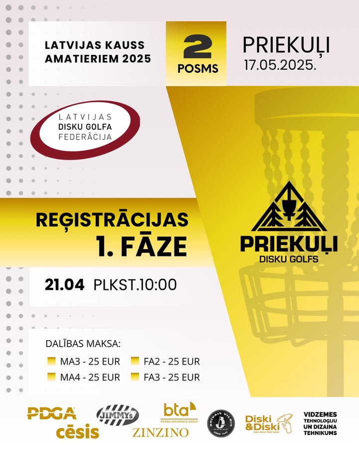 👉🏻Rītdien, 21.04., plkst. 10:00 atveras reģistrācijas 1. fāze uz LATVIJAS KAUSU AMATIERIEM DISKU GOLFĀ 2.posmu PRIEKUĻOS!