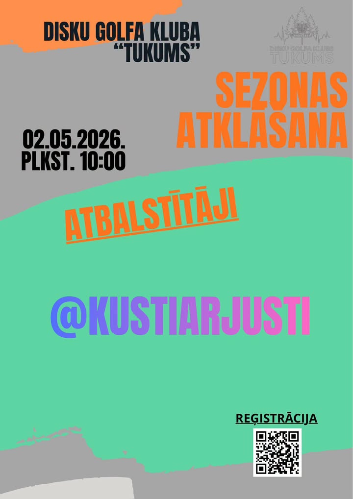 TUKUMA DISKU GOLFA PARKA ATKLĀŠANAS PASĀKUMA (02.05.2026. Plkst. 10:00) atbalstītājs KUSTI AR JUSTI 🫶