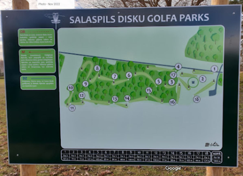 Ainaviska vieta pie Ako pieminekļa. Ir laukuma celiņi, ir meža taku ceļiņi. Vidējās sarežģitības trase, PAR3 105m, PAR4 160m. Labi pārdomāta un interesanta trase. Reljefs līdzens. Atrados Daugavas upes krastā, daži grozi ir ļoti tuvu ūdenim, bet krasts ir sekls, disku pazaudēt ir grūti. Dažreiz ir ļoti vējains. Parks vietējo vidū ir iecienīts pastaigām un piknikam.