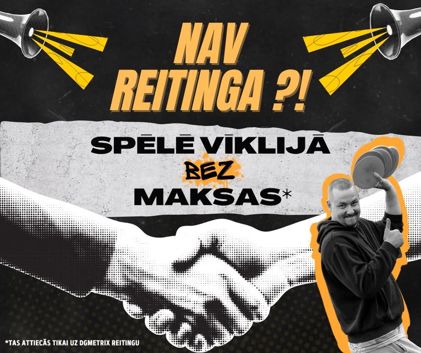 Jā, Jūs izlasījāt pareizi – ja Tev sacensību dienā nav DiscGolfMetrix reitinga, dalība ir bez maksas! 🥏💥
