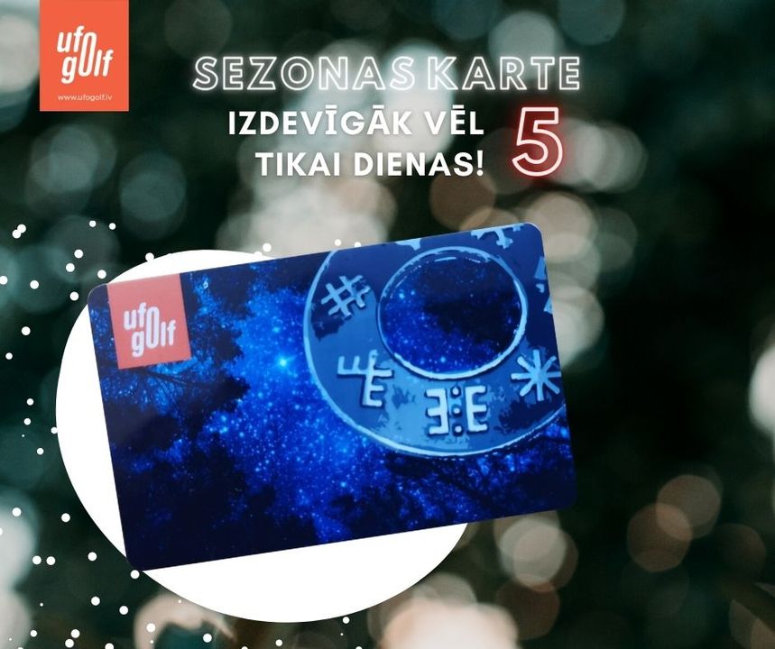 ⏰ Vēl tikai dažas dienas Tev ir iespēja iegādāties UFOGOLF 2023. gada sezonas karti par īpaši izdevīgu cenu un izbaudīt tās priekšrocības visu nākamo gadu. 👉 Raksti, lai iegādātos sezonas karti un sagādā sev izcilu dāvanu!