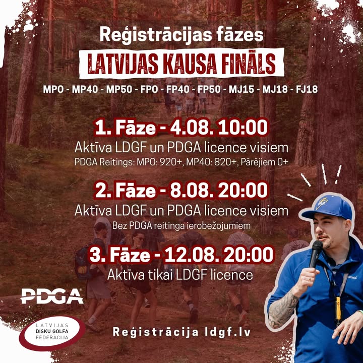1. fÄze ā Visiem ir jÄbÅ«t aktÄ«vÄm LDGF un PDGA licencÄm, kÄ arÄ« reitinga nosacÄ«jumi MPO 920+ un MP40 820+, pÄrÄjiem nav.