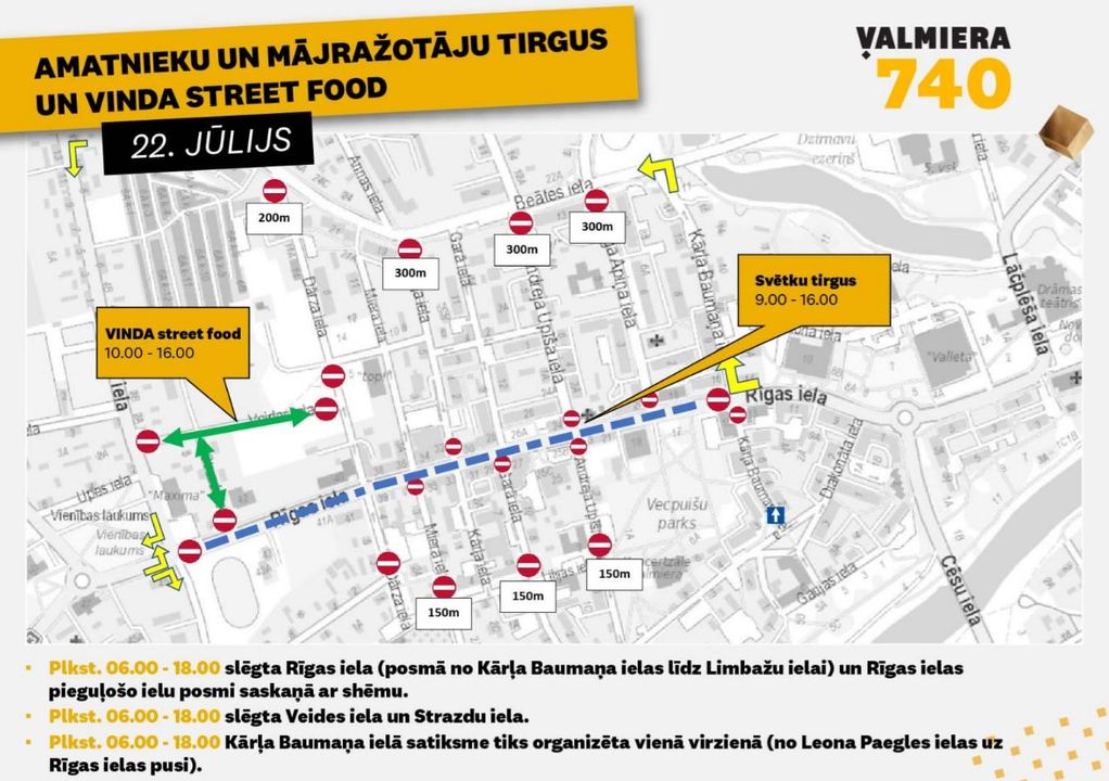 Rītdien Valmieras pilsētas svētku laikā būs slēgta Rīgas iela, attiecīgi iesakām braukt apkārt pilsētai pa apvadceļu - tā nokļūt līdz trasei būs daudz vieglāk.