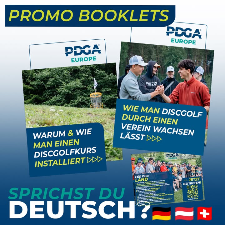 The promotional booklets “How & Why to Build a Disc Golf Course” and “How to Grow a Disc Golf Club”, as well as the flyer “36 Benefits of Being a PDGA Member”, are now available in GERMAN at 👉 https://www.pdga.com/documents/europe/brochures
