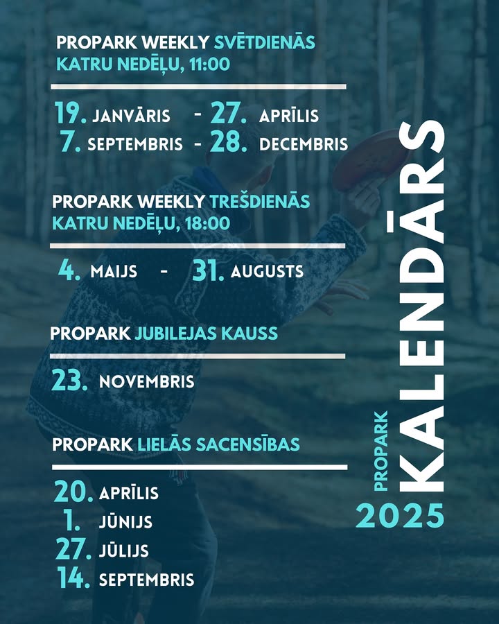 PROPARK disku golfa parka kalendārs 2025. gadam!🌟 Weekly sacensības: 🗓…