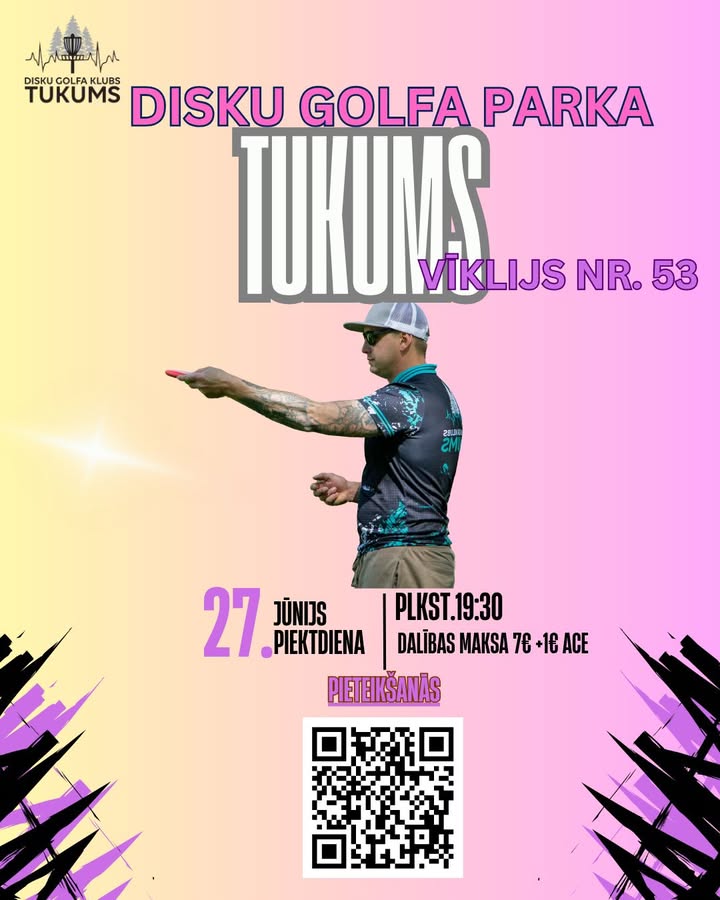 Tiekamies 27.06.2025. Plkst.19:30 (reģistrācija līdz plkst.18:30) Tukuma disku golfa parkā🤩.