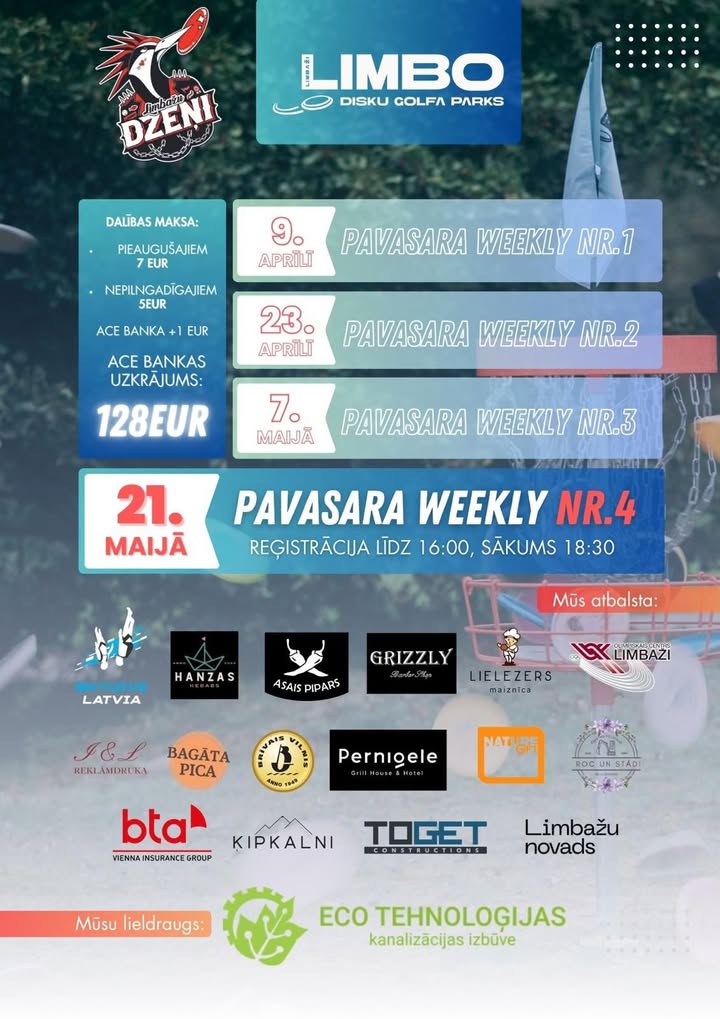 LIMBO disku golfa parks 19. Maijs, 2025 Tiekamies šo trešdien Limbo weeklijā! https://dgmtrx.com/3302064 https://www.facebook.com/118714254665716_122228201270036282