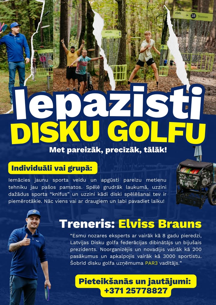 Vēlies iemācīties disku golfa pamatus, vai arī pilveidot savas esošās prasmes? - Tagad Ventspilī tev ir iespēja! Piedāvājumā individuālas vai grupu apmācības, kā arī kolektīvu saliedēšanas iespējas disku golfa laukumā. Sazinies un visu sarunāsim!